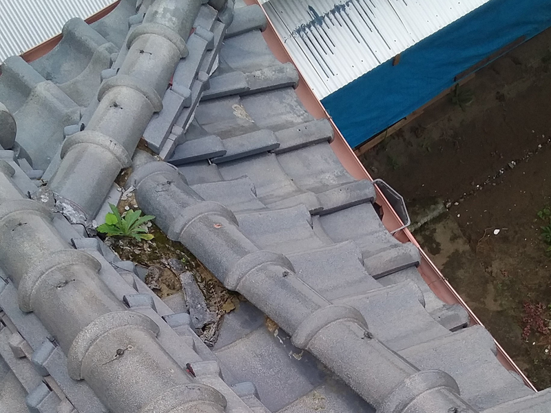 3.雨漏り・雨漏れの状態:入母屋屋根の隅棟部分にトンネルがちゃんとできているか確認