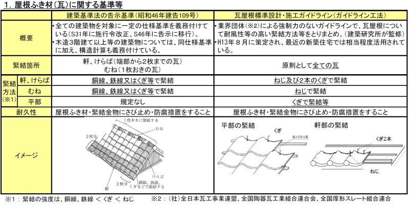 2. 強風でも落ちない瓦葺き工法が、法律で義務づけられる方針:現状