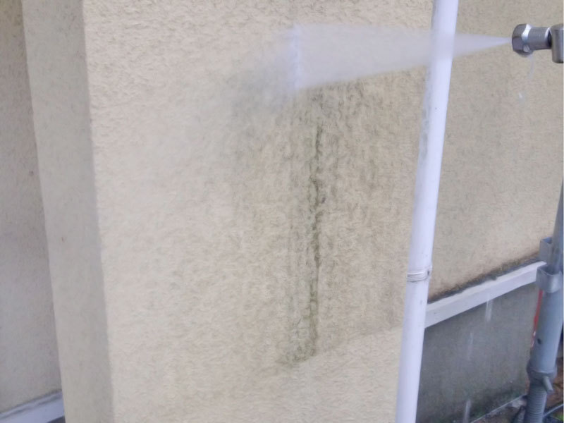 高圧洗浄機を用いて、屋根や外壁の汚れを吹き飛ばします。