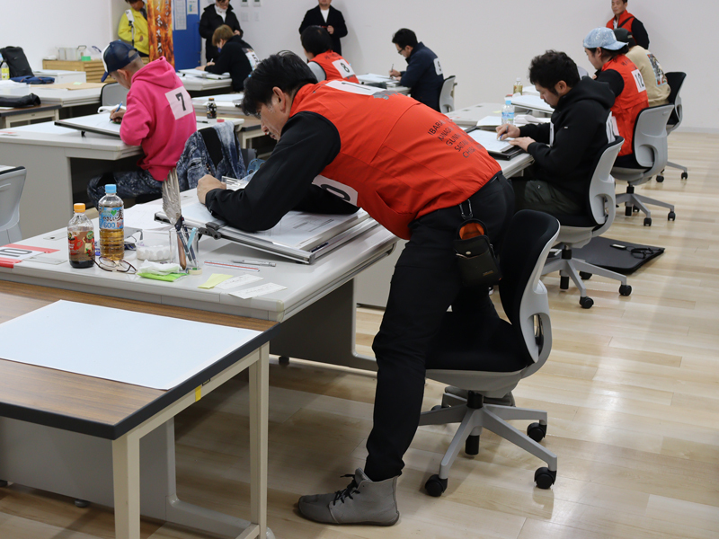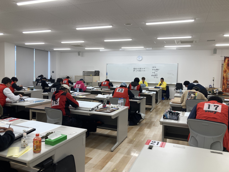 選手たちは真剣な眼差しで展開図を書き進めています。