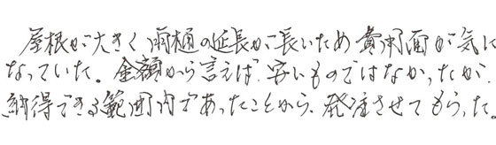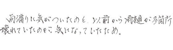 良かったです。話を聞いて今回、藤井金属工業さんに雨樋工事や雨漏り修理をお願いしようと思った理由を教えていただけますか?