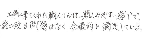 全く不満はないですね。しっかりと工事をして頂いて満足しています。