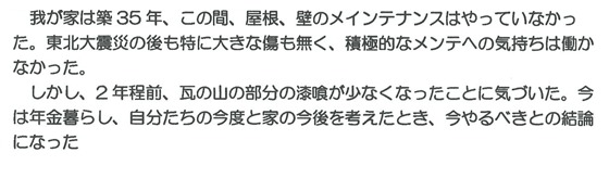 HOME > やねいろはをご利用頂いたお客さまの声を見る > S.Hさま(60代)