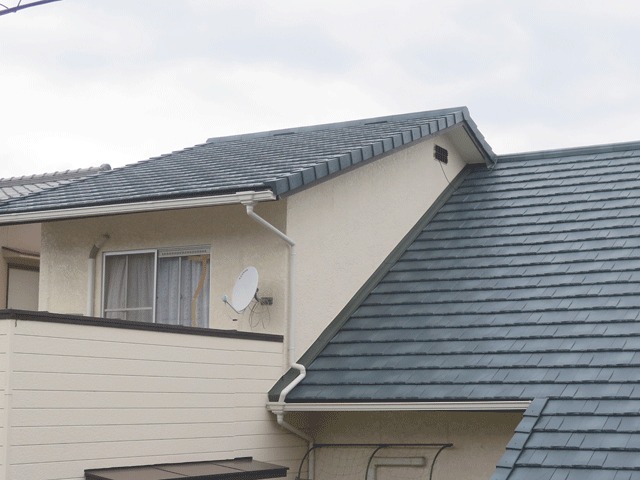 築40年。スレート屋根だったため10年ごとに塗装をしてメンテナンスを行ってきたのですが、数回目の塗装工事の後に、私の部屋の天井にシミができており、知り合いの大工さんに見てもらったところ、塗装の際にスレートとスレートの間に溜まった塗料に隙間を空ける「縁切り」という作業がなされておらず、それが引き金となって雨漏りが発生していたのです。大工さんと私でカッターを使って縁切りを行うと、雨漏りは止まりました。しかし、急な勾配の屋根であり、危険も伴うため全て自分ですべて工事をすることは断念しましたね。