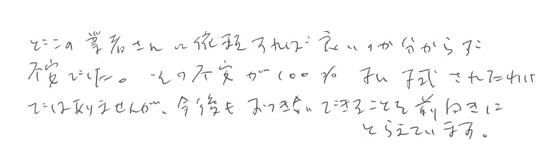 「第一印象と納得のいく提案と説明で安心して任せられる工事店」 地元の工事店だからこそ長い付き合いしていきたいお客さまの声