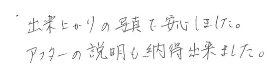 そうですね、やはり仕上がりについても直接の確認ができないので写真を見させてもらいました。