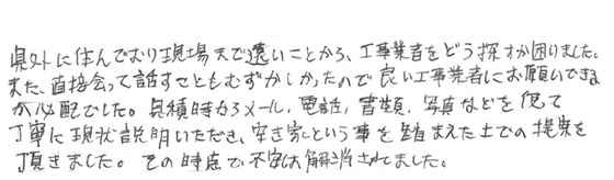 県外の業者で良いところが見つかるかという点と、その後のやり取りがうまくできるかが不安でしたね。