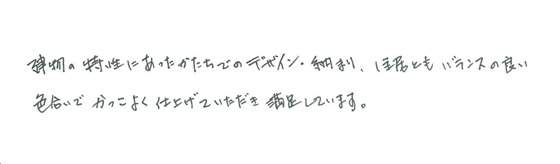 とても満足しています。現地調査もしっかりと時間をかけて丁寧にやっていただいて。私の見えないところで、色々と調整もしていただいたんじゃないかと思います。