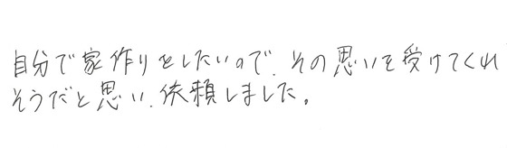 確かに珍しいご依頼でしたけど、とてもやりやすかったですよ。Mさまは下地の張り方もお上手でしたし、説明のために書かれた図面もわかりやすかったです。あまりにもスムーズなので、何かそういうお仕事をされているのかと思ったくらいです。