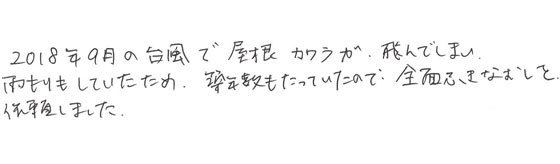 「災害の後でもしっかりした工事をして欲しい」台風で屋根が飛んだお客さまの声