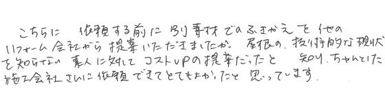 Q実際に屋根工事を依頼しての率直な感想をお願いいたします。