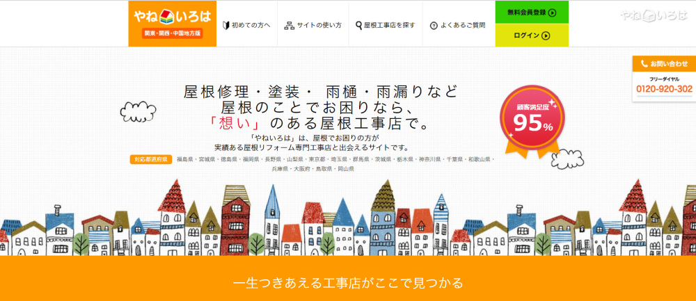 「やねいろは」は当社規定の掲載基準をクリアした、顔が見れる地元の屋根工事店のみ掲載。お客様自身が直接、地元の屋根工事店に依頼が可能です。屋根工事依頼をお考えの方は、ぜひご活用ください。