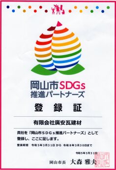 HOME > 屋根工事店 > ひろやす瓦(有限会社廣安瓦建材) > 屋根工事店日記 > 岡山市SDGs推進パートナーズ 登録店