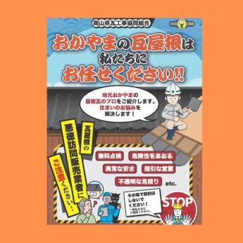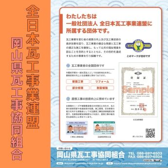 最近、関東全域で屋根調査を装った犯罪行為が報告されています。このような事例からお客様の不安を少しでも軽減し、安心してご依頼いただける環境づくりのために、当社では以下の安全対策を提案いたします。1. **有資格者かどうかを確認する** 屋根の調査やメンテナンスを行う業者は、必ず有資格者であることを確認しましょう。当社ではすべてのスタッフが資格を持ち、名札や証明書を携帯していますので、安心してお声掛けください。2. **事前の訪問予約と確認** 突然の訪問者に対しては、すぐに家に入れるのではなく、必ず事前に訪問予約を確認しましょう。正規の屋根業者は必ず事前にご連絡し、訪問日時を確定します。当社でも訪問前に必ず電話での確認を行っています。3. **身分証明書の提示を求める** どの業者でも、訪問時には必ず身分証明書や名刺を提示することが基本です。業者が提示を渋る場合は、調査やメンテナンスを断ることをお勧めします。当社ではスタッフ全員が身分証明書をお見せできる準備をしております。4. **不審な点があれば、警察やご近所に相談** 不審な訪問者や行動があった場合は、躊躇せず警察に相談しましょう。また、ご近所と日頃からの連携を大切にし、互いに情報を共有することで地域全体の安全性を高めることができます。5. **防犯対策の強化** セキュリティカメラの設置や、チャイム付きインターホンでの会話確認など、防犯対策を強化することも有効です。特に一人暮らしの方や高齢の方は、訪問者に対して直接扉を開けずに対応できる環境を整えることが重要です。---### 当社について当社は地域の皆様に安心してご依頼いただけるよう、すべてのスタッフが資格を持ち、訪問時には必ず事前にご連絡を差し上げております。何かご不明な点やご質問があれば、お気軽にお問い合わせください。【お問い合わせ先】 電話番号:086-724-3290メール:hiroyasu-r@po.oninet.ne.jp 安心の屋根調査は、信頼できる業者にお任せください!チラシは岡山県瓦工事協同組合で作成したものです