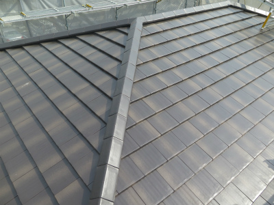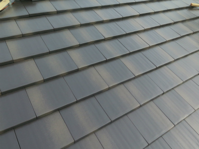 スッキリした屋根材メンテナンスが今後掛り難いこと茶色系の色環境に優しい瓦という条件で選択した屋根材「施工前」「施工後」の写真