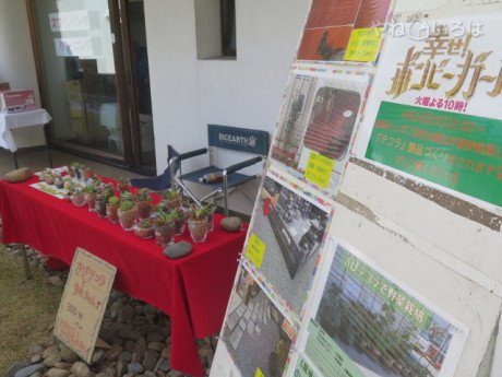 フリーマーケットに出店瓦チップのきびテコラの多孔質て保水性の良さを利用し× 多肉植物て飾っています。 300円~980円/ケ15時まであらい建設様特設会場にて即売