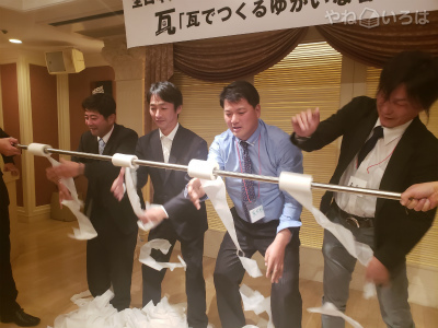 1月12日13日 瓦業界の方々とディスカッションしてきました。「西日本ブロック岡山大会」72名の方々の懇親は良いご縁を頂きました。今回は岡山商科大学経営学部の3年ともコラボレーションをし明るい会になりました。≪瓦でつくるゆかいな暮らし≫ みなさんの顔を見ればどれくらい盛り上がれたかは一目瞭然大きな夢を持って次回は宮崎県での開催を楽しみにしています