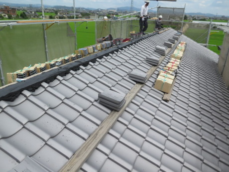 残暑、お見舞い申し上げます。屋根についている鬼瓦の留め付け方銅線の♯18という太さ「ステンレス線の方が腐蝕しなくていんじやないの?」と、言われますが、‘曲げ強度’に弱く切れる心配があるため当社は銅線を採用しています。