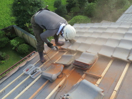 8月は全く降らなかった雨も9月に入り降水確率30%でも雨が降ったり。と、仕事が思うように進みません。さて、【屋根葺き替え工事】とは「新しい材料で屋根の衣装直し」をすることをいいますが、今回は、既存の瓦を再利用し復旧する【屋根葺き直し工事】瓦を削り全体の並びの再調整しながら葺いていく手間は掛かりますが、新たな材料を利用しないため費用を押さえられることが大きな利点です。※ただし、施工上問題点の打合せは事業者と必ずしておいてください。それぞれの施工法に利点はありますが、早めにメンテナンスをしていくことは家を安価に維持していくことかもしれません。