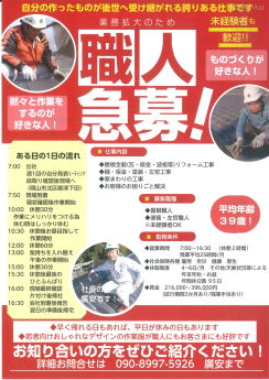 かわら新聞発刊今後もよろしくお願いします。今回は職人募集のお知らせもアップしています