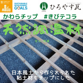 廃瓦・不要瓦を破砕した瓦チップの きびテコラ今回は床下調湿材料として敷き込みました。保水率8%で適度な湿度コントロールをしてくれます。ジメジメした床下が気になる方、天然素材だからこそ安心で日本風土にあっています。