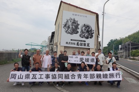 岡山県瓦工事協同組合青年部19名で愛媛県今治 #菊銀製瓦 瓦メーカー訪問#かわら館 では瓦の歴史と遺品を眺め感動#松山道後温泉 かわらの未来を語る