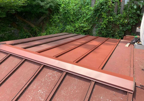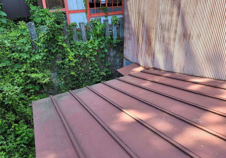 お客様より雨漏りしているので見てほしいとの事で現地調査に伺ったところ、劣化により屋根に穴が開いていました。本屋根は瓦屋根から板金屋根への葺き替えを提案させていただき、見積書を作成いたしました。下屋及び庇(ひさし)は穴も開いていることから、早急に工事をしてほしいとのことでした。まずは、劣化のひどい下屋及び庇の工事を進めてから本屋根の工事に取り掛かるという契約をし、施工いたしました。