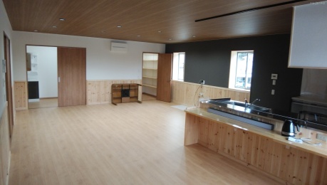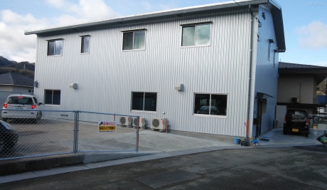 既存の倉庫を当社の設計により、2階は住宅、1階はアスレチックジムに改造しました。既存の倉庫は屋根、外壁共に波形スレートだったので、全て撤去して屋根はハゼ嵌合折板葺き、外壁はプラスターボードを捨張りして防火性を高めた後に、角波鉄板で仕上げました。住宅に見えないようなシンプルな意匠にして欲しいという要望でしたが、お客様からは仕上がりに満足をいただけました。1階のアスレチックジムは防音性を気にしていたので、壁を二重壁にして断熱材も2重にしました。窓は外部サッシに加えて内窓にインプラスを採用したので、防音性はかなり良くなり、かなり大きな音も外に漏れることはありません。2階の住宅部も二重壁にして鉄骨柱などの凸凹が室内からは見えないようにした結果、壁厚が厚くなったので断熱性も向上しています。床は床断熱にしたかったのですが、予算の関係で断念しましたが、発泡断熱材60mmを敷き込んでいるので、断熱性が高く2階の音が1階に漏れることもありません。施工地 真庭市