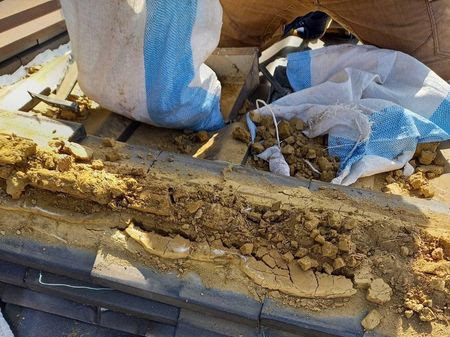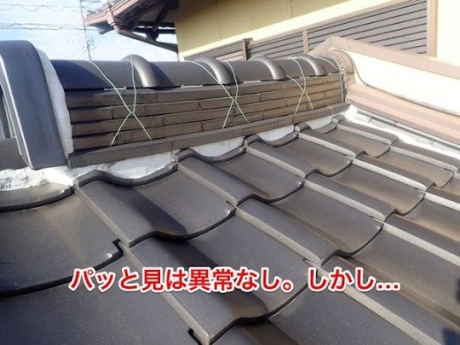 パッと見ではわからない、発見しにくい雨漏りということで、勝手に命名させていただきました。「棟」という部分(今回はその中でも大棟)からの雨漏りは、調査段階では証拠不十分なことが多いです。微妙なバランスで保たれていることもあり、下手にバラせないのが理由です。逮捕(修理)に踏み切るには、いろんな視点で状況証拠を集めることが大事。そして解体したら動かぬ証拠を発見。原因が解れば間違いなく直すことが出来ます。