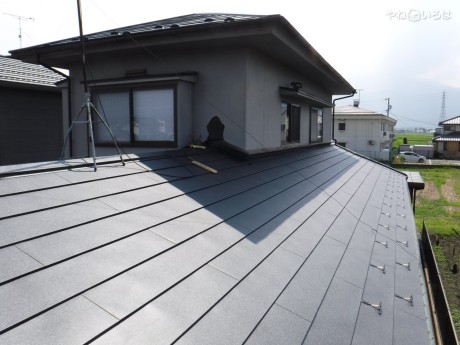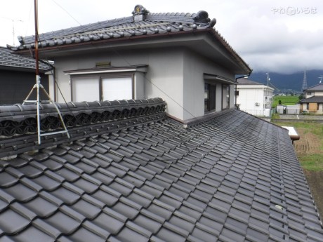 お客さまから耐震工事のご相談をいただきました。既存の屋根材は和瓦で棟瓦を高く積んでいた為、段数を減段し震度7程度でも耐えられるガイドライン(耐震・耐風)工法も提案いたしましたが、リフォームにおいてはより効果のある金属屋根材で葺き替えをし、屋根全体が軽くなり見た目もすっきりとした印象となり、お客さまも「これで安心できる」と喜んでおられました。