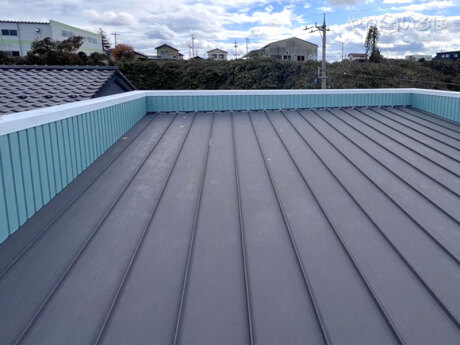 石川県加賀市黒崎町の株式会社福村板金は、金属屋根(ガルバリウム鋼板屋根)・瓦屋根、外壁、雨樋修理など外装全般のリフォーム・修理を行う住宅工事店。メイン事業は金属屋根(ガルバリウム鋼板屋根)ですが、他社板金工事店よりも瓦屋根に強い自負があります。地域の風向きを鑑みて葺く方向を変えるなど経験に基づいた工事に定評があります。雨漏り・雨樋修理も手がけています。