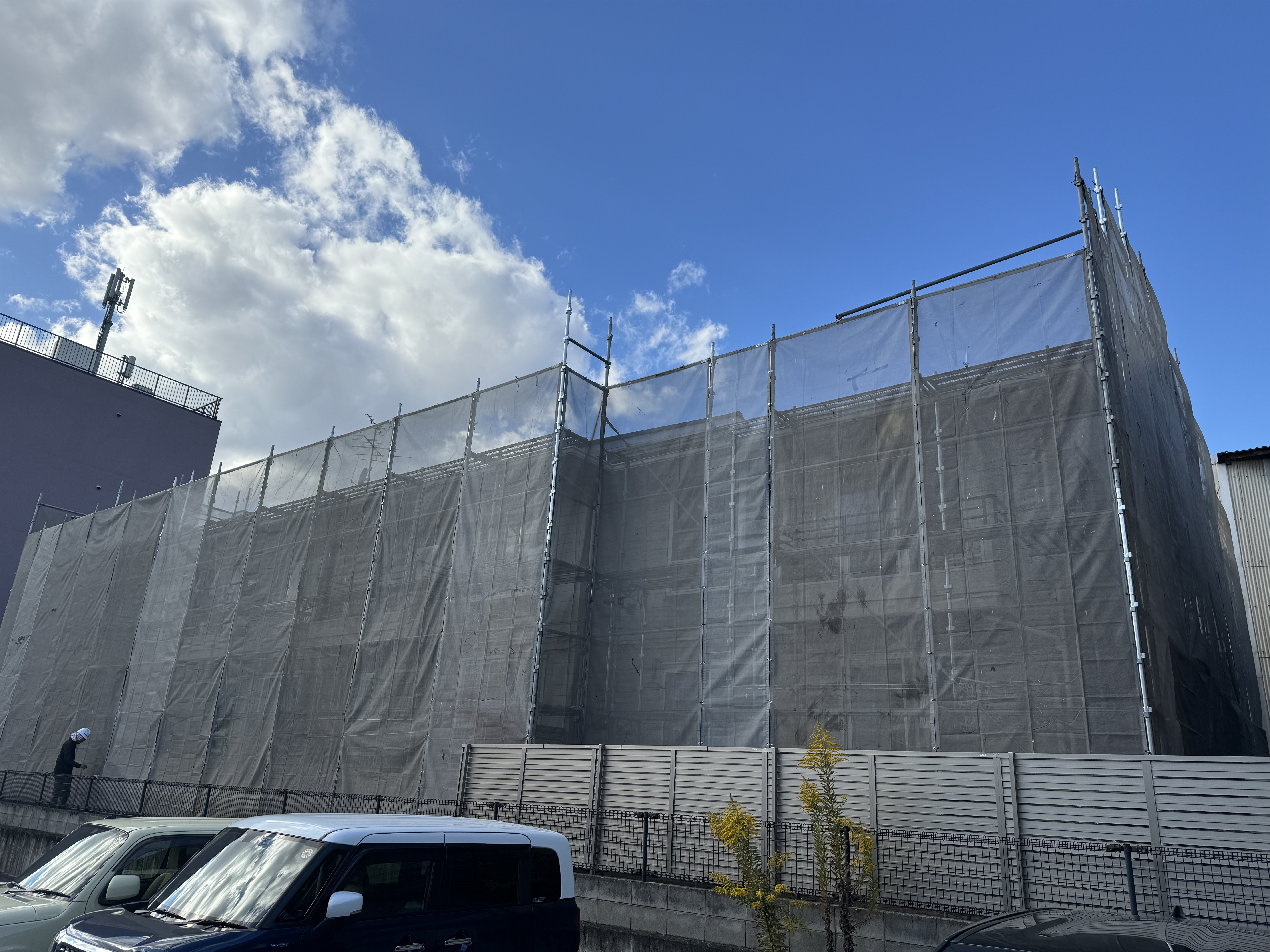 岡山市にて2階建アパートの屋根外壁塗装工事が着工致しました。 屋根や外壁等の経年劣化により傷みがでておりますが、しっかりとした塗装工事をする事で建物を蘇らせます💪