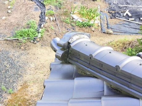 お客さまから「数日前から雨漏りがしているので見に来てもらえませんか」との連絡があり、現地調査に伺いました。調査の結果、瓦の積み直し、漆喰の補修、雨樋・谷樋の交換が必要なことがわかり、施工しました。