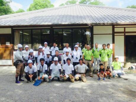 土曜日に、高松の栗林公園の屋根清掃に参加して来ました。香川県の瓦工事組合が毎年されている活動で、今年は岡山県瓦組合青年部も交流活動の一環で参加させていただきました。瓦組合ならではの屋根の点検や清掃が出来ました。