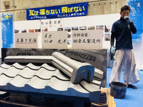 土日はコンベックス岡山で「ものづくりフェア」があり岡山県瓦工事組合も参加しました。うちの名職人✨の川田くんは葺士として実演させてもらい、テレビデビューもしました❗OHKの「なんしょん」という番組で生中継されました。フェイスブックの方には動画もあります!是非、見て下さいね〜(*´∇`*)