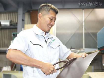 畠井さん、板金業に就く前は『この仕事は加工品を屋根に取り付けているだけ』だと思っていたそう。でも実は板金の面白さは自分で加工する作業にあったようです。屋根の上の作業だけを見るとガテン系ですが、その前の段階、屋根にぴったり合うよう加工する作業には細やかさが不可欠です。加工して作業することに面白みがあると断言する畠井さんの中にも、きっと慎重で繊細な心持ちがあるのだと感じました。