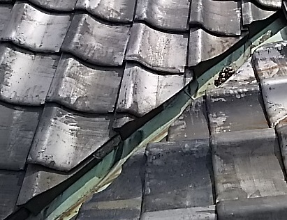 築40年以上の和瓦葺き家屋にて雨漏れがあるとの事で、点検/葺替見積りの依頼をいただきました。谷部分は銅板を使用されており、経年劣化による腐蝕のため穴が空いてる状態となっておりました。酸性雨の影響もあると思います。※この写真では分かりづらいですね(^^;古くから銅板が使用されておりますが、現在では、銅板より安価で対候性も高いガルバリウム鋼鈑が一般的となっております。