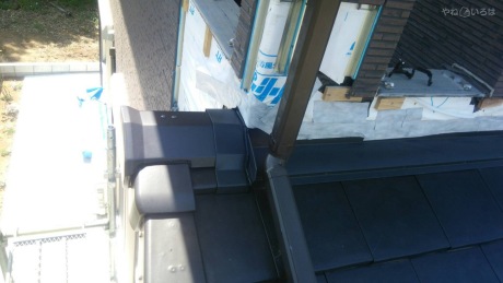 片流冠と壁との取り合いの古い板金を取り外し新しい板金に施工致しました。