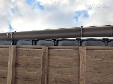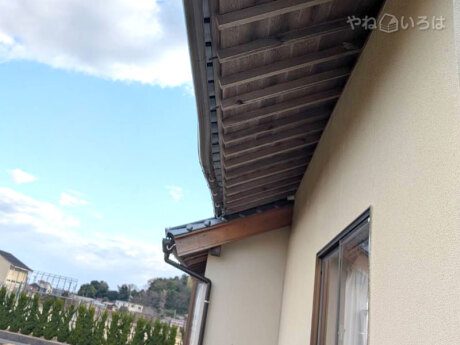 お客さまより「樋の金具が何か所か外れて樋がたゆんできているので直して欲しい」との連絡があり、現地調査に伺いました。見させていただいたところ、樋の受け金具が破損し外れていたため、後日交換させていただきました。