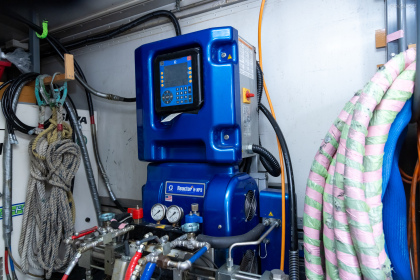 高橋工務店では防水素材のポリウレアの取り扱いをしています。ポリウレアは板金の上から塗布できる樹脂の防水素材で、高い塗装技術も必須だそう。豊さんは自社の板金職人と塗装職人の技術をフル活用して、彼らが共に仕事ができる環境を整備していきたいと意欲的です。今後は、ポリウレアの販路を開拓し、実績を積んでいきたいと語っていました。