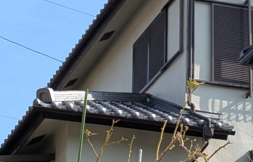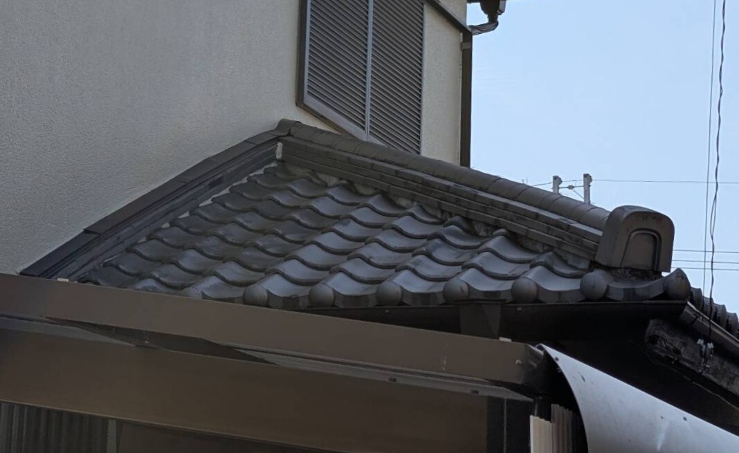 施工前と施工後の比較写真です。 この1階屋根部分でも、2段積まれていた のし瓦がなくなったことで軽量化され、台風や地震に強い強力棟に変わりました。