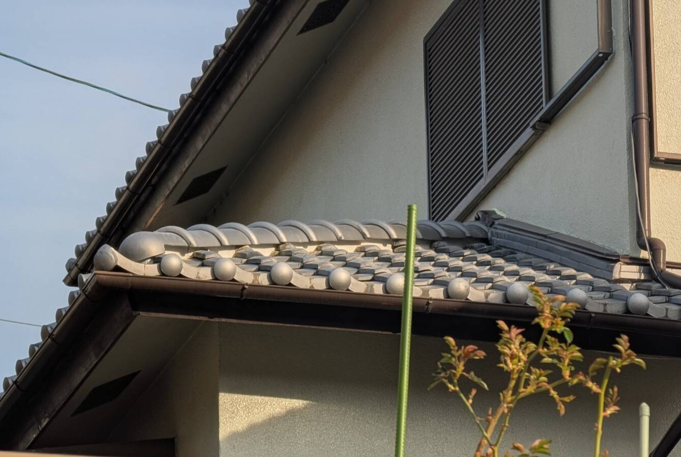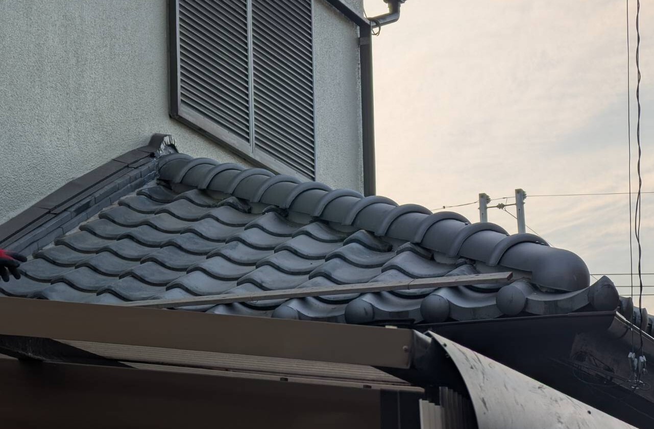 施工前の棟(1~3枚目の写真)は のし瓦が数段重ねられた上に冠瓦が乗せられていたのですが、この強力棟の施工では のし瓦がなくなりシンプルになっています。