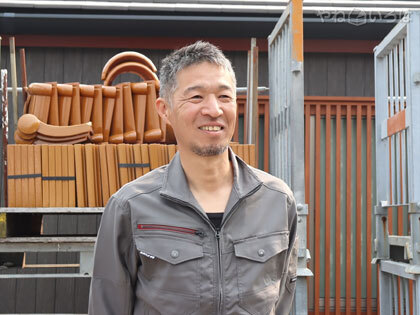 「屋根リフォームは瓦から瓦への葺き替え、カラーベストから板金への葺き替え、部分的な修理など様々です。一般住宅のお客さまがメインですね。この辺りは日本瓦が多いんですけど、ほとんどが昔の土葺きの屋根なんです。だからまず既存の瓦を剥いで土をすべて撤去してから、下地も新しくして改めて瓦を葺いていく流れです」