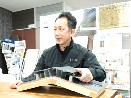 「中越地震があって以降、この辺りでは瓦から金属屋根に葺き替える人が増えたように感じています。瓦自体はすごく長く持つんですけど、防水シートの方が先に劣化してきちゃうという問題があるので、耐震性も加味して金属に替える人が多いんだと思います。金属だと重量が15分の1くらいになりますから。あと昔の板金屋根は風に弱いイメージがあったけど、今の板金は強いですね。うちは屋根を試験機に入れて強風に対する実験もしているので、耐久性に関しての詳しいご説明も可能です」