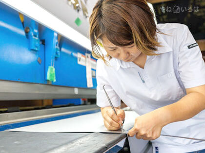 「先代の父の時代から住宅工事をたくさん手掛けてきたので経験が多く、実績がある分、臨機応変に動けるのが大きな強みですね。20年、30年、長く勤めている職人がいて、同じ場所から仕事の経過を見続けてきた人がいる、そして彼らの技術を引き継ぐ若い人たちがいる、本当に心強いですね。加工場には女性もいて、屋根材以外のものを数多く作っているのもうちの面白いところです。折り紙で作れるものは大抵鉄板でも作れるんじゃないかな。サンマ焼きの受け皿や公民館の靴棚の靴受け、そういった生活に根付いたものをステンレス加工で作ったこともあります。友達とかに聞くような感覚で、『こういうの作れる?これどうやって直したらいいの?』と聞いてくれたら嬉しいです」