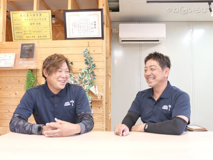「僕の苦手な部分、全部できるんですよ。パソコン関係もそうだし、ブログを書いてくれたりとかね。本当に頼もしいです」と、息子さんの貴大さんをべた褒めする柴崎さん。初めは貴大さんと屋根の仕事を一緒にするつもりでしたが、ふたを開けてみたら塗装職人になっていたと楽しそうに笑います。でもそのおかげで、いけど瓦や(株式会社えいちえむ)は屋根工事と塗装工事、両方の工事ができる会社へと成長したのです。親子それぞれの実力が、揺るぎない会社の強みになっていますね。