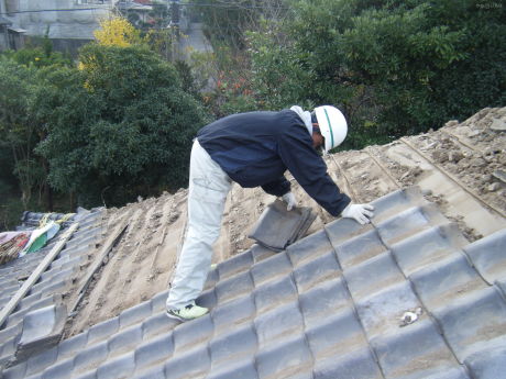 地元中学生の授業の一環で、瓦工事を体験してもらいました。楽しんでもらったと思います。