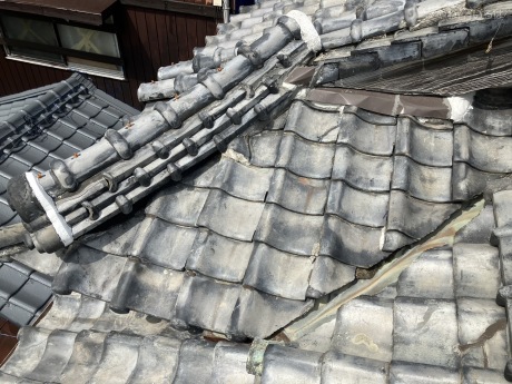 お客さまから「見積りをお願いしたいのですが、可能ですか」と依頼があり、伺いました。雨漏りはしていませんでしたが、経年劣化で瓦のズレやヒビ割れがあり、雨樋より軒瓦が出ている状況でした。数種類のお見積りを作成し、今回は補修工事となりました。お客さまには「これで安心できます」とお声掛けいただきました。