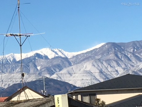 昨日の夜、久しぶりの雨が降り、雪に変わりました。盆地には積もりませんでしたが南アルプスは雪化粧^^寒そうですが、キレイです~